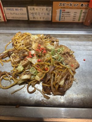 会場にある時の写真と下は大阪のお好みやき屋さんで焼きそばを食べたときの写真です